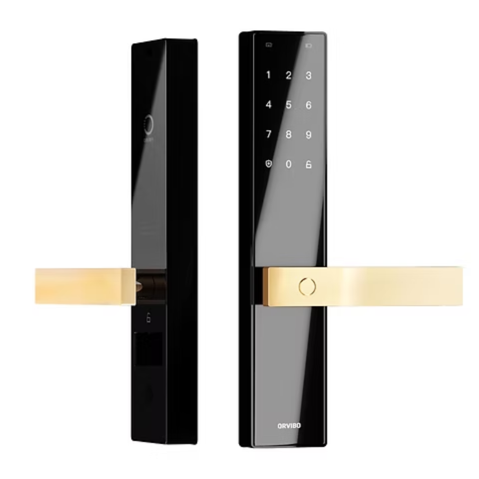 Fechadura com abertura por código ou utilizando biometria ou NFC. A fechadura está totalmente integrada no sistema da Orvibo, sendo possível automatizar a entrada na casa, ou até permitir códigos temporários para entrada.