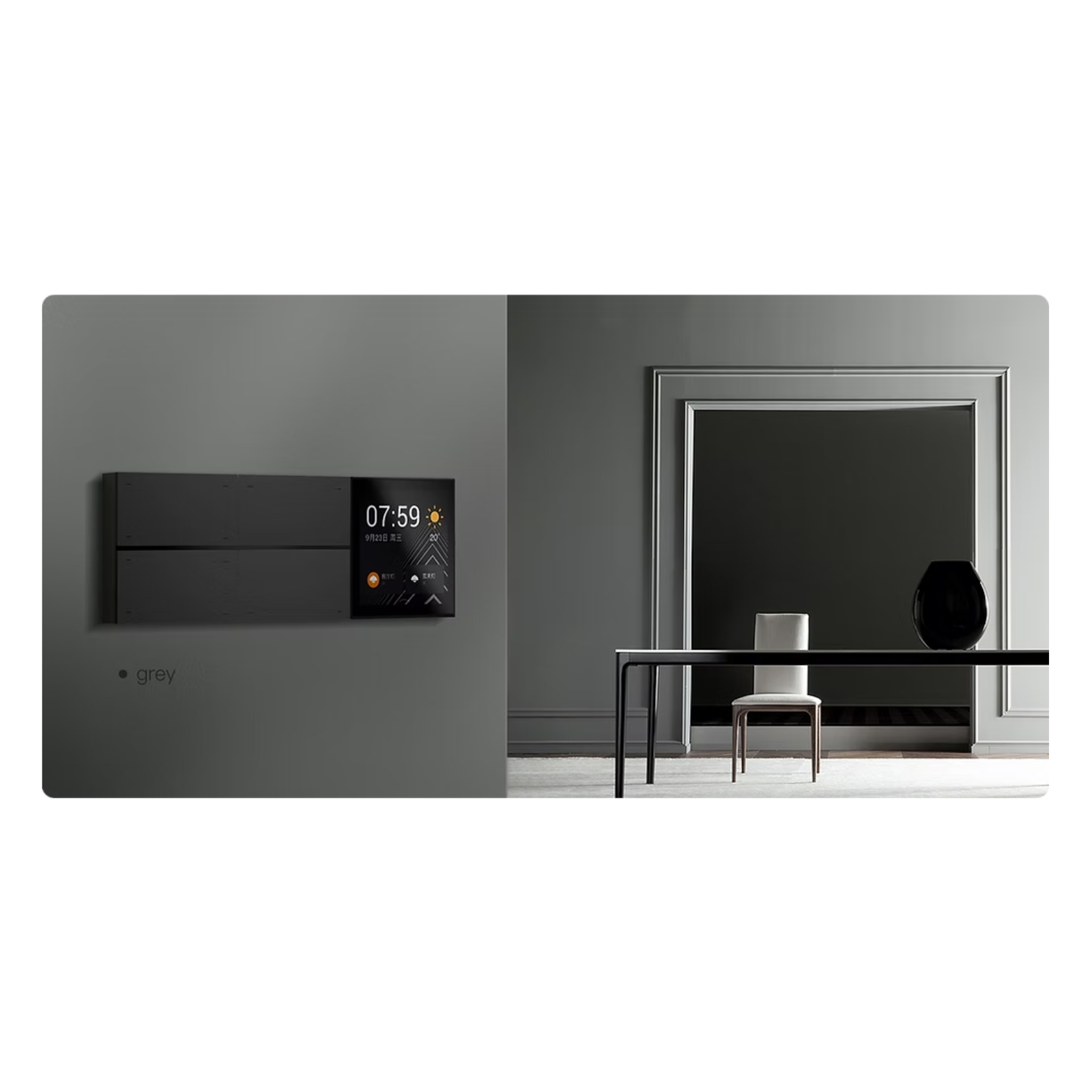 Interruptor com 4 botões inteligentes que podem ter o nome de cena ou espaço personalizado e que podem ser trocados para facilitar a adaptação do bach ao layout do espaço.